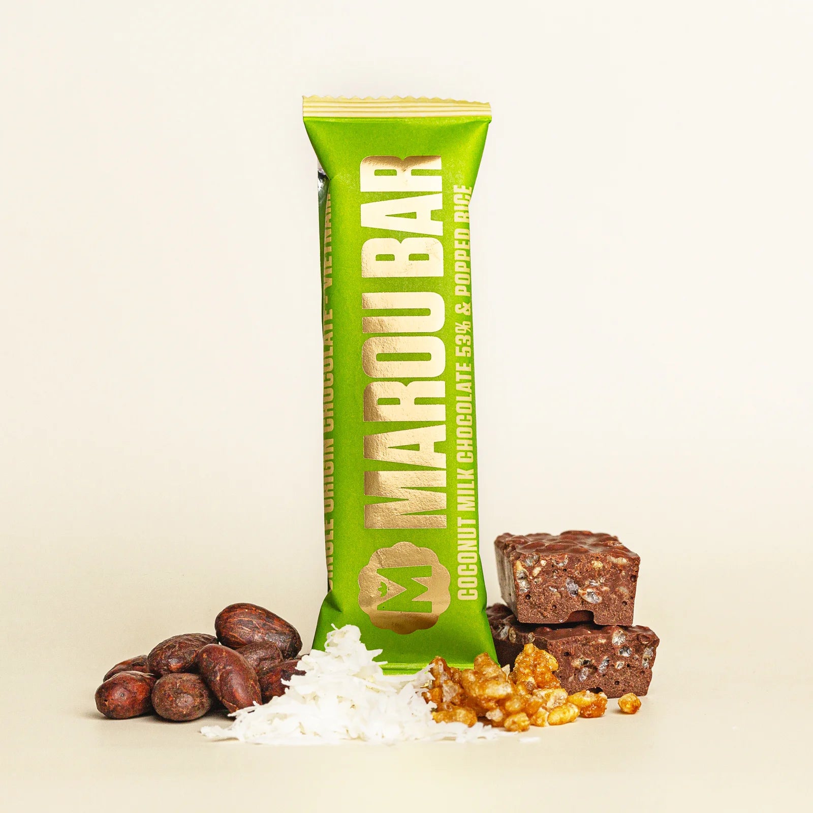 Crafted for serious on-the-go deliciousness! The perfect bite-size treat that takes you on a trip to the tropics. Crispy flakes of popped rice in a 53% creamy coconut milk chocolate.
