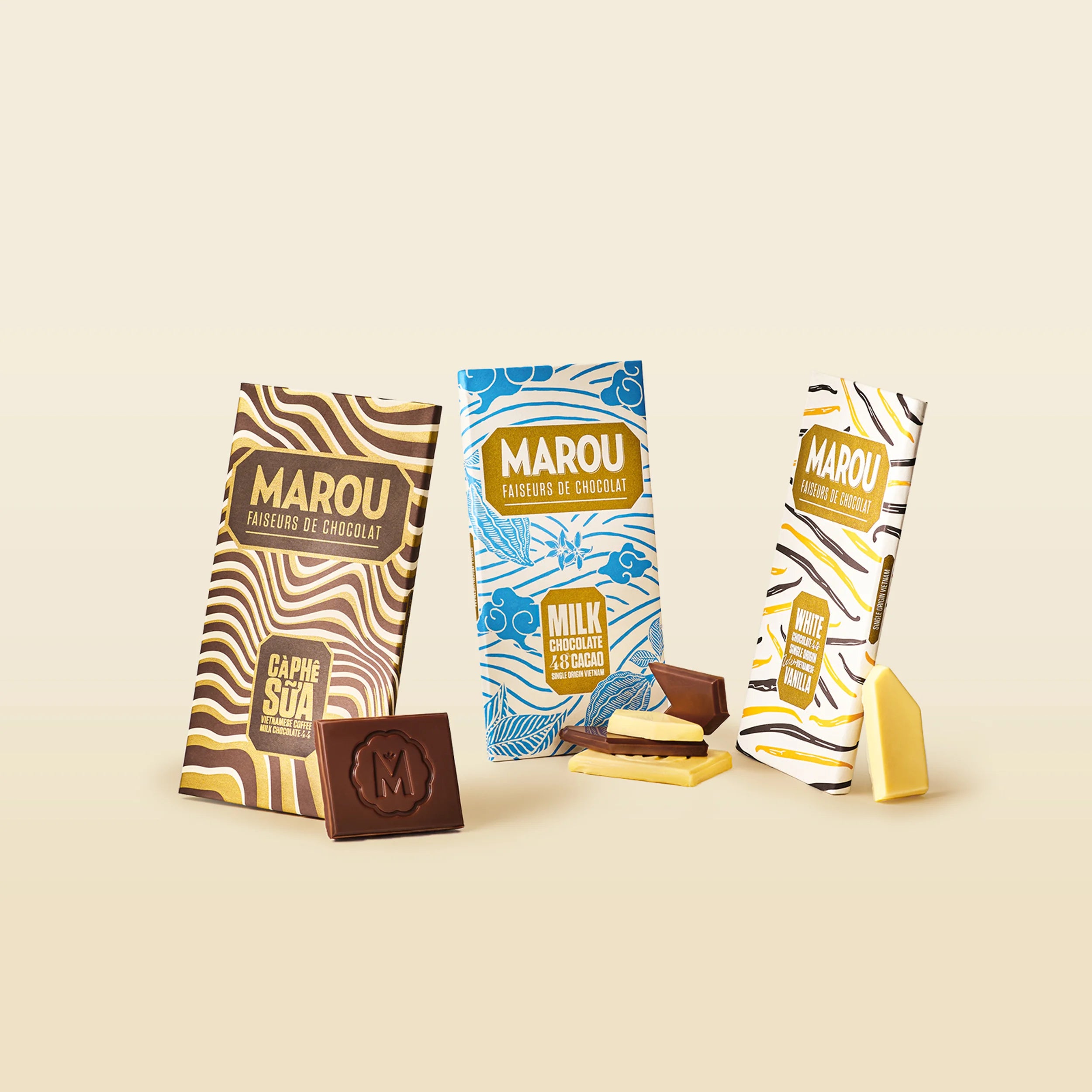 Crafted for those who appreciate the finer, sweeter things in life, this collection brings together three delicious bars that highlight the richness of cacao with the smoothness of milk and the sweetness of white chocolate.