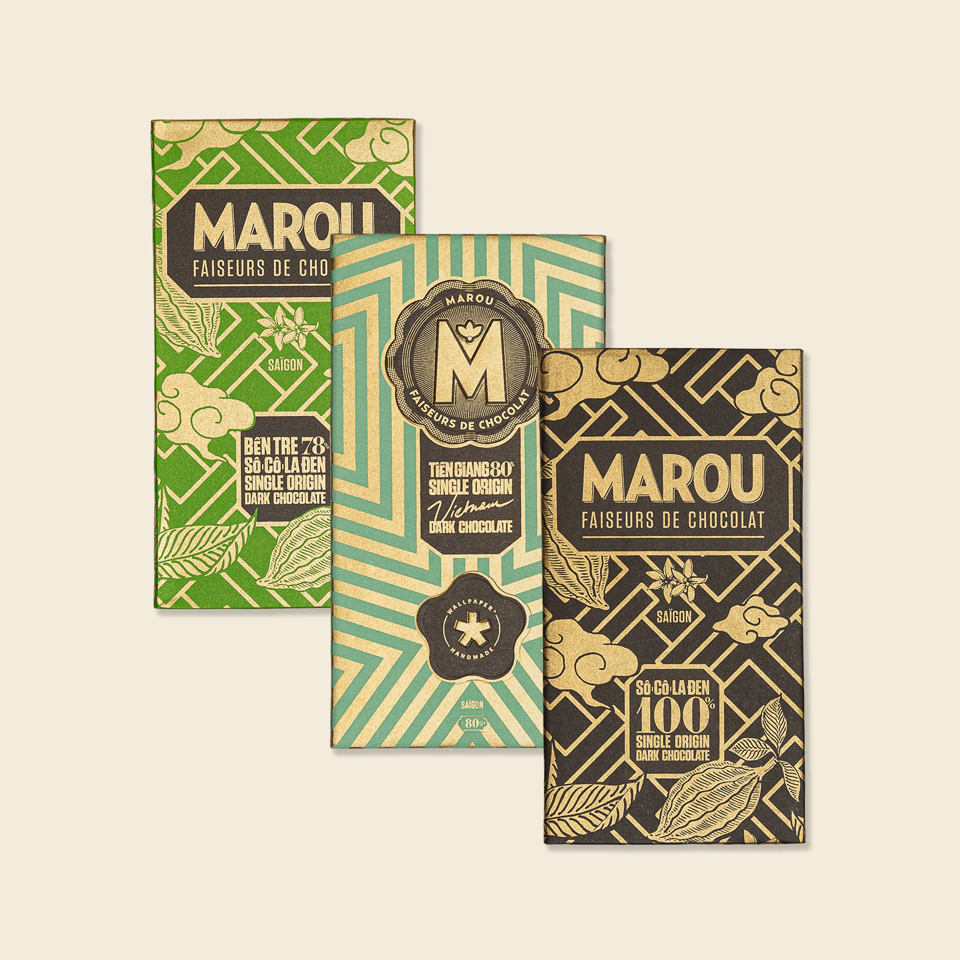 A foundational set for dark chocolate enthusiasts. This collection highlights the intensity of Vietnamese cacao with minimal sugar: 100% Cacao, Tien Giang 80%, and Ben Tre 78%. Experience the clean, pure flavor of our single-origin beans.