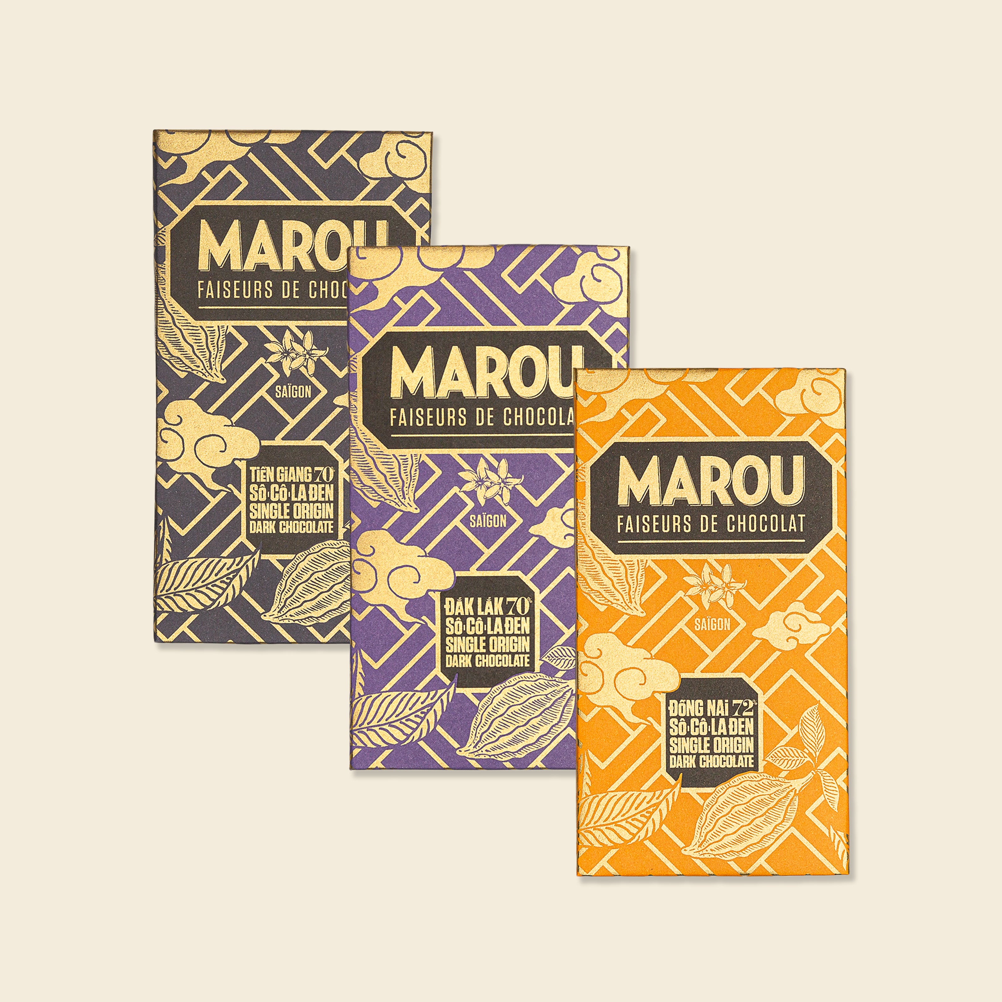 Perfect for those seeking a less intense dark chocolate experience. This set offers low bitterness with rich flavor, featuring Tien Giang 70%, Dak Lak 70%, and Dong Nai 72%. Great for newcomers to high-percentage chocolate.