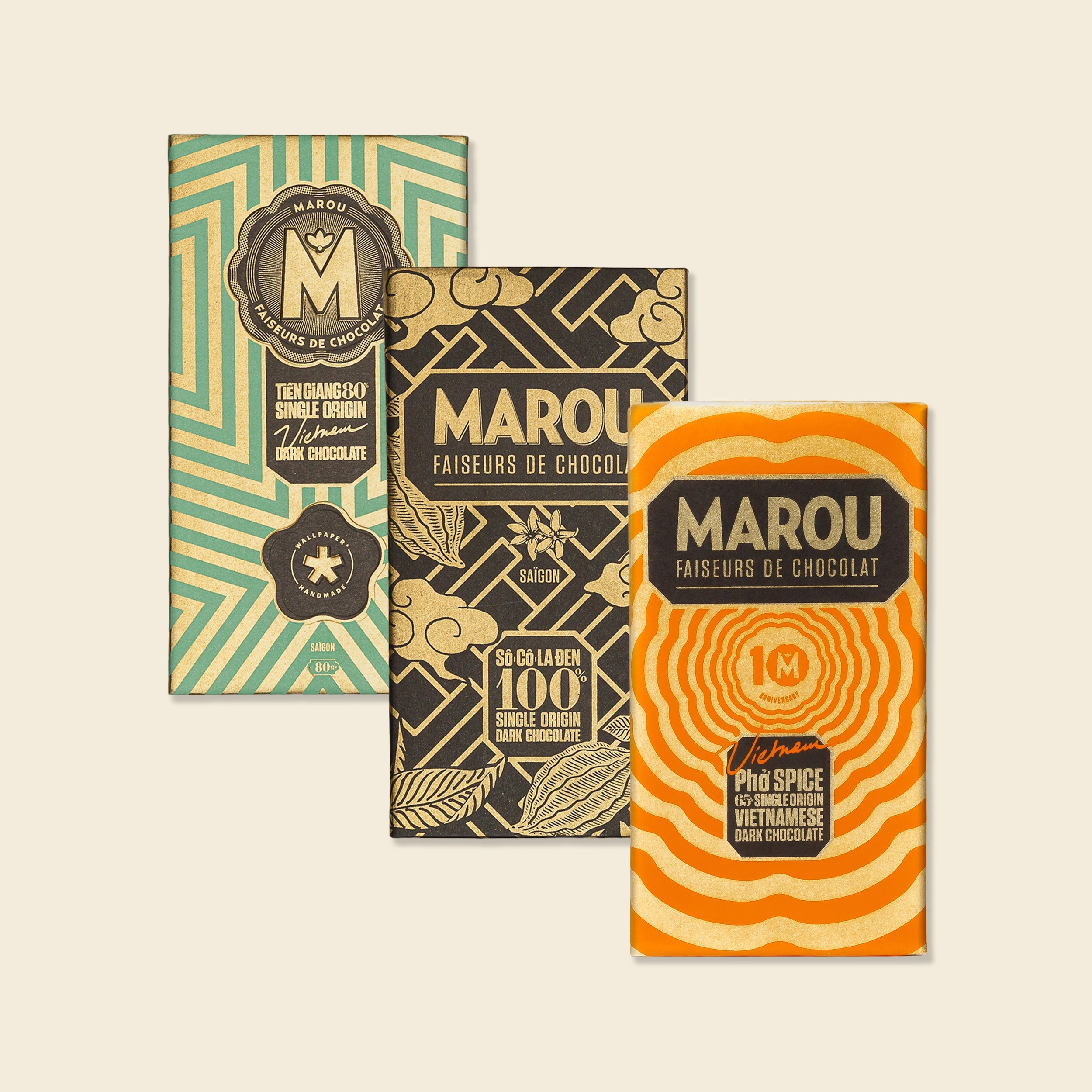 Specialty Bar Collection: 100%, Tien Giang 80%, and Pho Spices 65% Collection – Set of 3